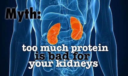 It is often claimed that a high protein intake can cause harm to the kidneys, but this is false. Even though it is important for people with pre-existing kidney disease to reduce their protein intake, the same is not true for people with healthy kidneys. Studies show that protein consumption has no detrimental effect on kidney function in healthy people … even in the case of bodybuilders who often eat large quantities of protein rich foods.