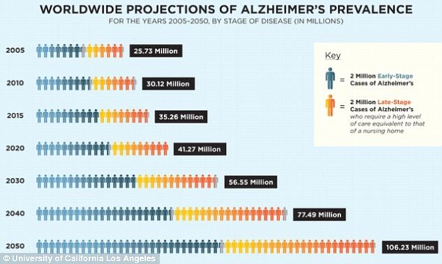 The data on Alzheimer’s disease started trending upwards in the 2010s and has just started its statistical upswing. See the chart below for current projections:
