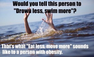 This flawed mantra has been parroted by doctors, nutritionists and fitness trainers for nearly 50 years as if it were nothing short of common sense. But yet our nations obesity statistics have continued to climb for the past 50 years. The notion that weight loss is as simple as “eating less and moving more” is just shy of offensive to someone who struggles with obesity. Would you tell someone who doesn’t know how to swim to “drown less and swim more“?