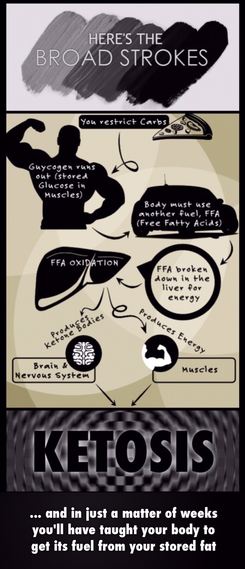 There is an alternate fuel source! … and it’s from a source that your body was designed to use … your own body fat. That’s right, you can train your metabolism to utilize fat as a source of energy. The notion that eating dietary fat actually equates to “getting fat” is a complete farce. In fact, healthy dietary fats are much more satiating than carbohydrates, and they do not initiate an insulin response that prompts the storage of fat. When you deprive your body of carbohydrates, your liver starts releasing ketone bodies.